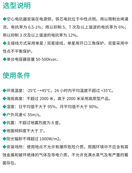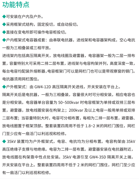装置主要用于6kV、10kV、24kV、35kV三相电力系统,用以调整平衡网络电压提高功率因数降低损耗提高供电质量。